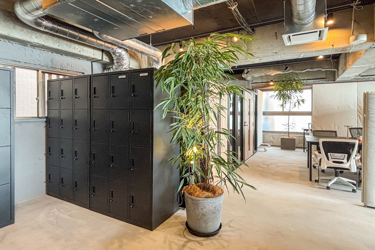 観葉植物が配置された温かみのある空間で、オフィスというよりもリビングのような居心地の良さを感じました。