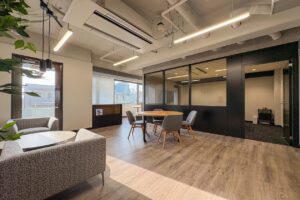 最初に案内していただいた会議室は、防音機能が抜群。外部の音を完全にシャットアウトし、重要な商談や会議には最適なスペースです。音響設計へのこだわりが随所に感じられました。