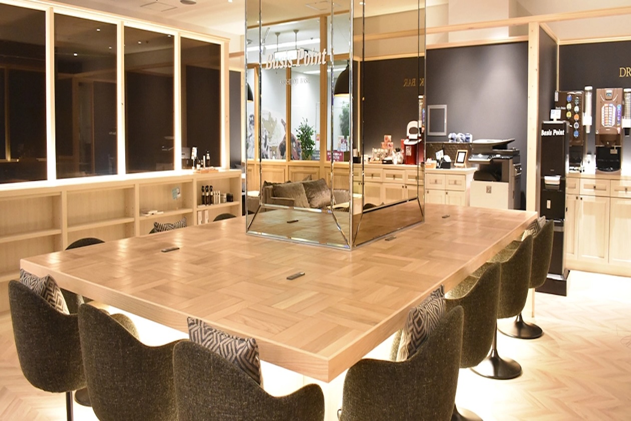 吉祥寺駅から徒歩1分、マルイ4Fにある「BasisPoint 吉祥寺マルイ店」は、ホテルラウンジを思わせる洗練された空間で、誰でも気軽に利用できるコワーキングスペースです。