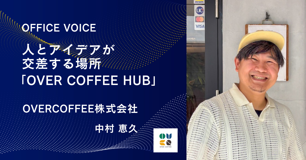 今回お話を伺ったのは、カフェ併設コワーキングスペース「OVER COFFEE HUB」を運営するOVER COFFEE 株式会社の中村恵久さんです。