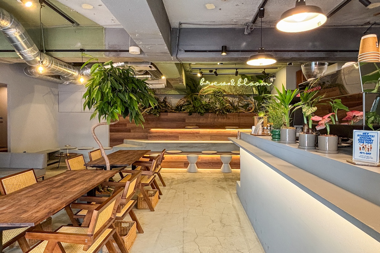 ── カフェに掲げられている「Brew & Bloom(ブリュー・アンド・ブルーム)」とは、どんな意味ですか?