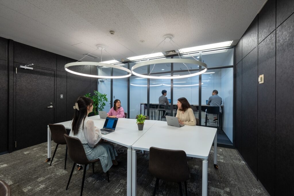 利用者はスタートアップ、フリーランス、小規模チームなど幅広く、少人数用の個室から、開放的なラウンジ、専用デスクまで、多様なプランを提供。家具付きでそのまま業務を開始できる使い勝手のよさも人気の理由です。来客対応ができるミーティングルームや、オンライン会議に便利なブースも備えられ、場所を選ばない働き方に対応しています。