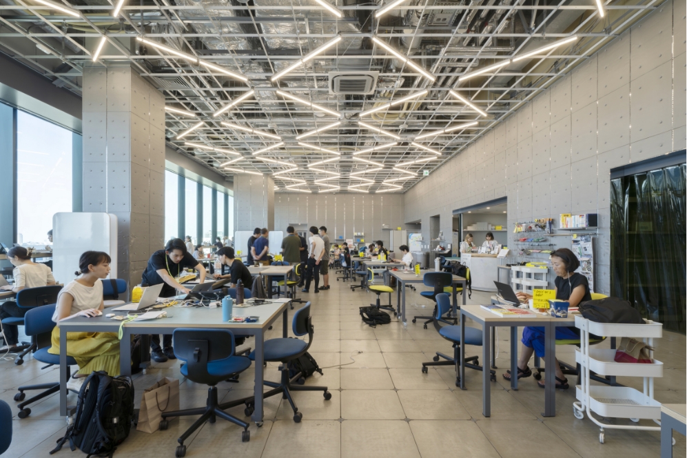 利用者層は起業家、クリエイター、学生、研究者など幅広く、ワークスペースとしての利用だけでなく、プロジェクト活動やイベント開催など、多様な目的に応じて柔軟に使われています。作業に集中したい人が使えるエリアと、交流が生まれやすいラウンジ、企画・発表のためのイベントスペースが一つのフロアにまとめられており、活動内容に合わせて使い分けが可能です。